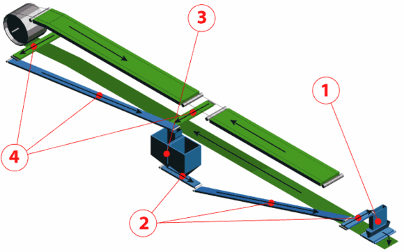 - Distribution Group composed by a mobile device transversally guided to follow the membrane edge, provided with a recovery hopper for accumulating and leveling, a distributing driven conveyor belt and an adjustable laying hopper.